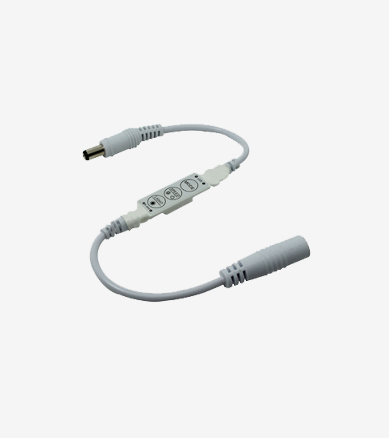 Controler for LED strips en farve med ca. 20 lysmønstre, med tænd, sluk, op og ned i lysstyrke. DC stik monteret