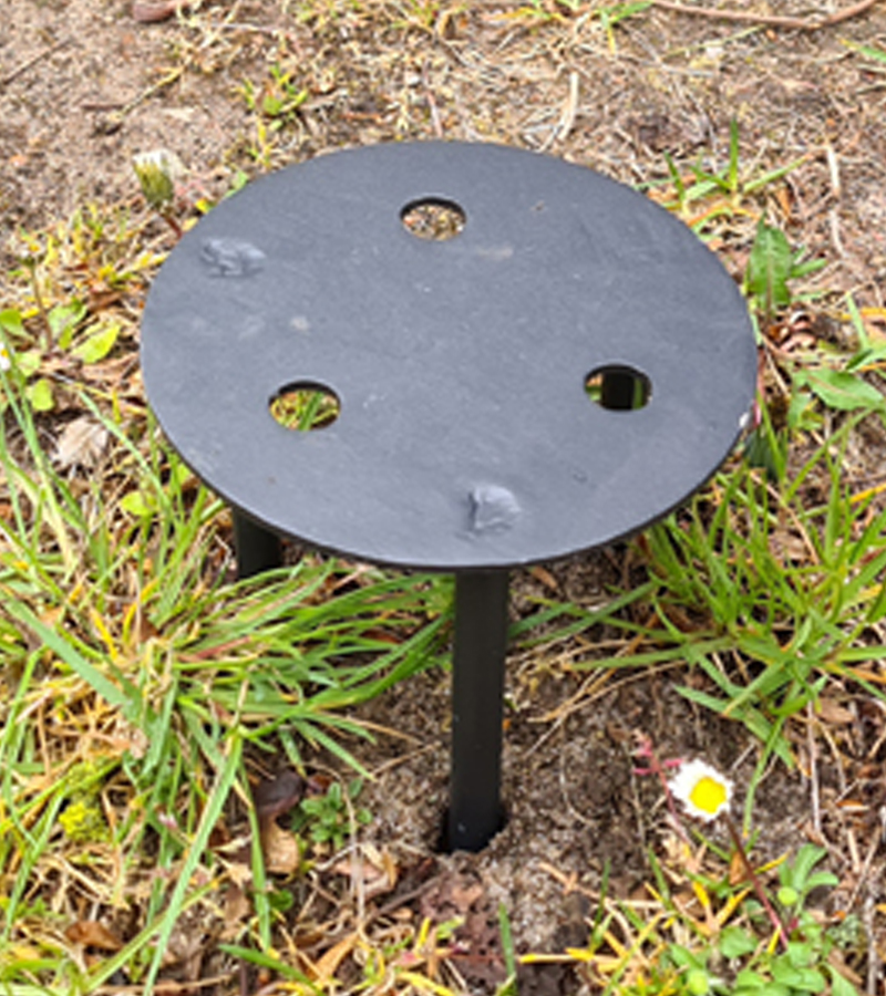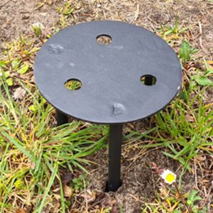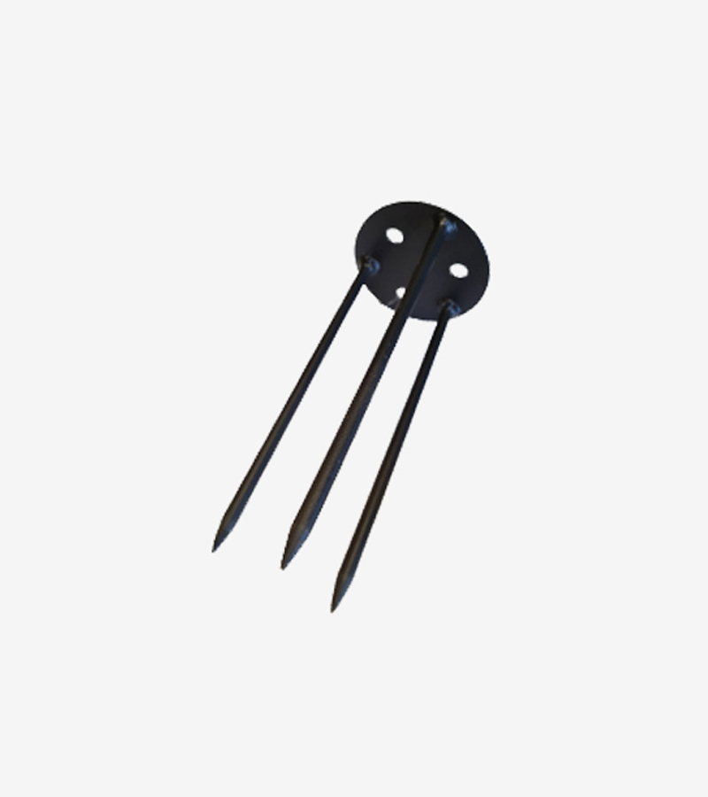 Jordspyd i støbejern, robust udførsel i vejrbestandig kvalitet. Kan stikkes ned i blødt underlag som jord og græs, eller støbes i beton.
