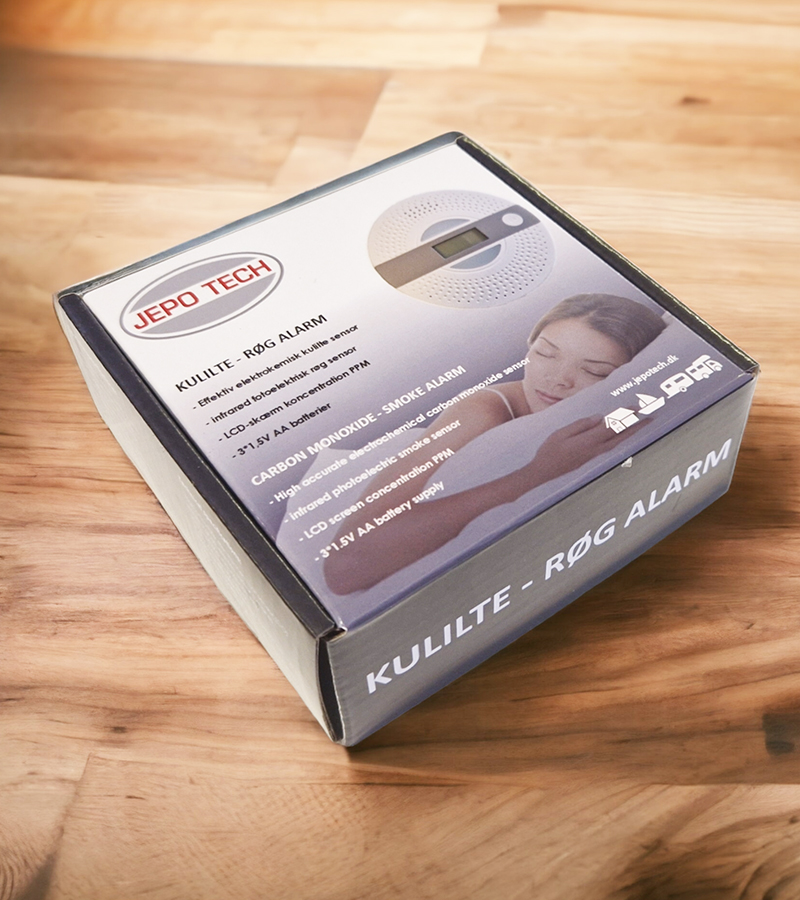 KULILTE – RØG ALARM – Høj nøjagtig elektrokemisk kulilte sensor – infrarød fotoelektrisk røg sensor – LCD-skærm koncentration PPM – 3*1,5V AA batterier (ikke inkluderet)