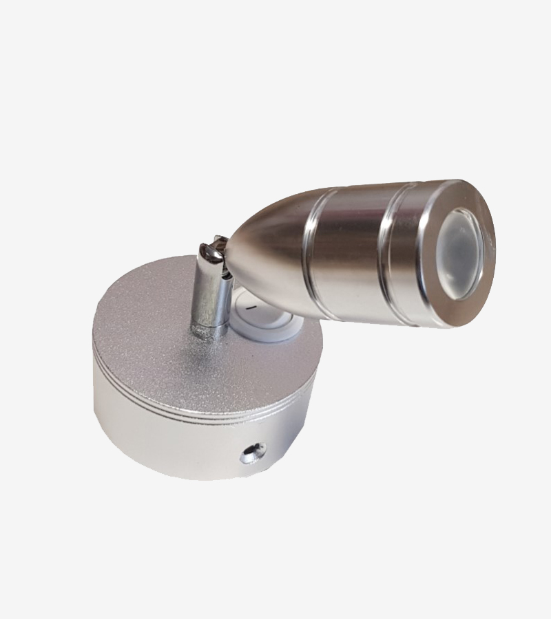 Læsespot lampe som er lavet i blank aluminium. Lampen er med 60graders lysvinkel.
