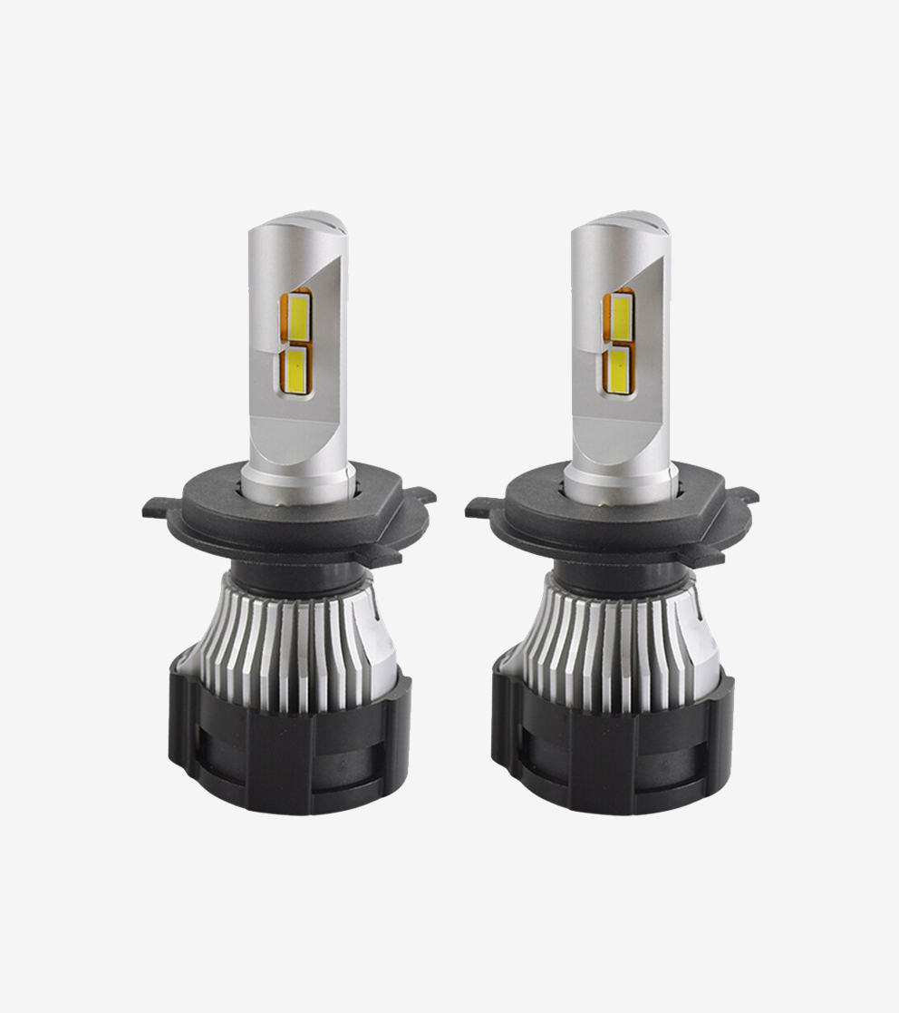 Kraftige H4 LED forlygtepærer i 6500K – 56W (28W pr stk.).